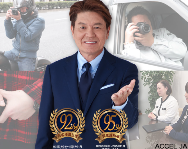 ※1浮気調査以外の調査項目も対応(対象調査:結婚・婚約調査、行動調査、ストーカー・嫌がらせ、各種不正受給調査、新入社員採用調査・社員の不正調査、クレーマー対策、詐欺事件等の被害調査