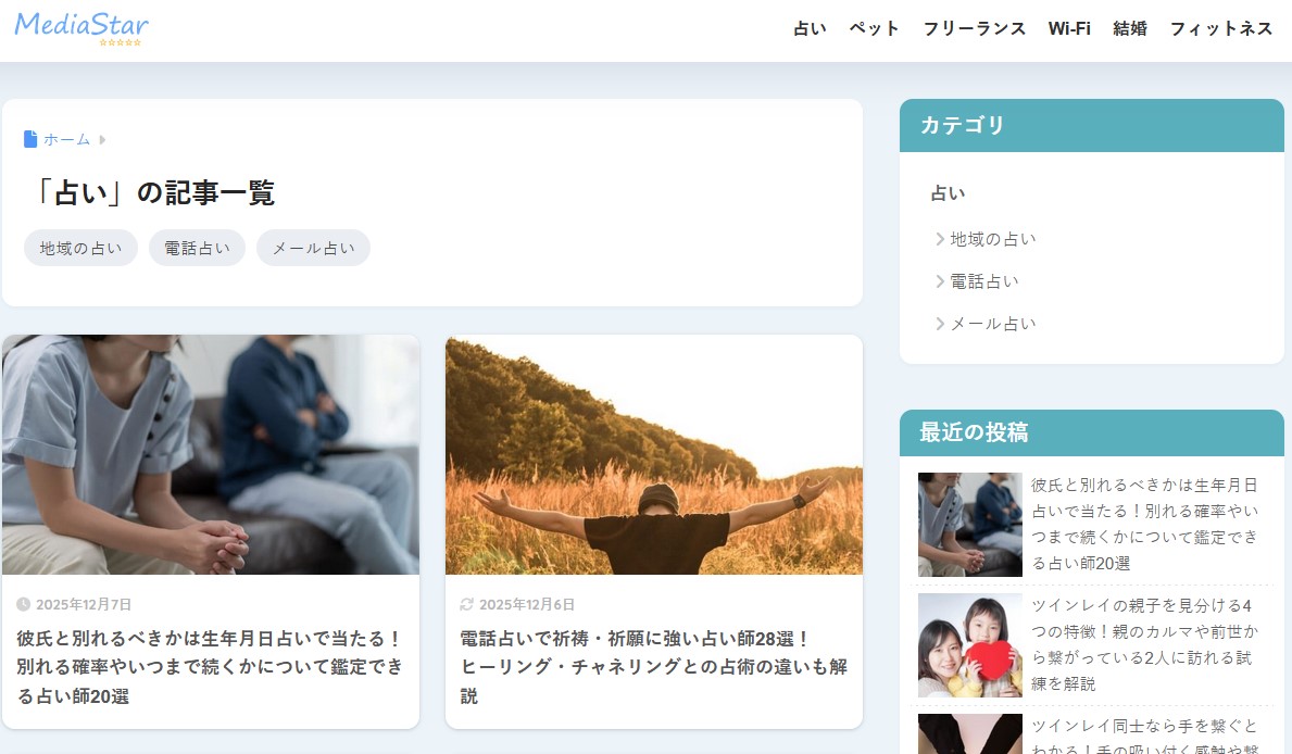 HOME > お知らせ > お知らせ メディア出演人気占い師・アメリ先生監修「MediaStar」様にリンク掲載いただきました。 2025年12月7日 「MediaStar」様にガルエージェンシーのリンクを掲載いただきました。メディアスター_占い→https://media-geek.co.jp/star/uranai/鑑定実績3万件以上の人気占い師・アメリ先生監修!悩みや迷いを明るい未来に変える、心に寄り添う占いコンテンツを厳選。恋愛や人生の岐路に答える電話占い情報が満載。信頼できる占いが見つかります。 Twitter Share LINE -お知らせ, メディア出演 -人生, 占い, 恋愛, 電話占い